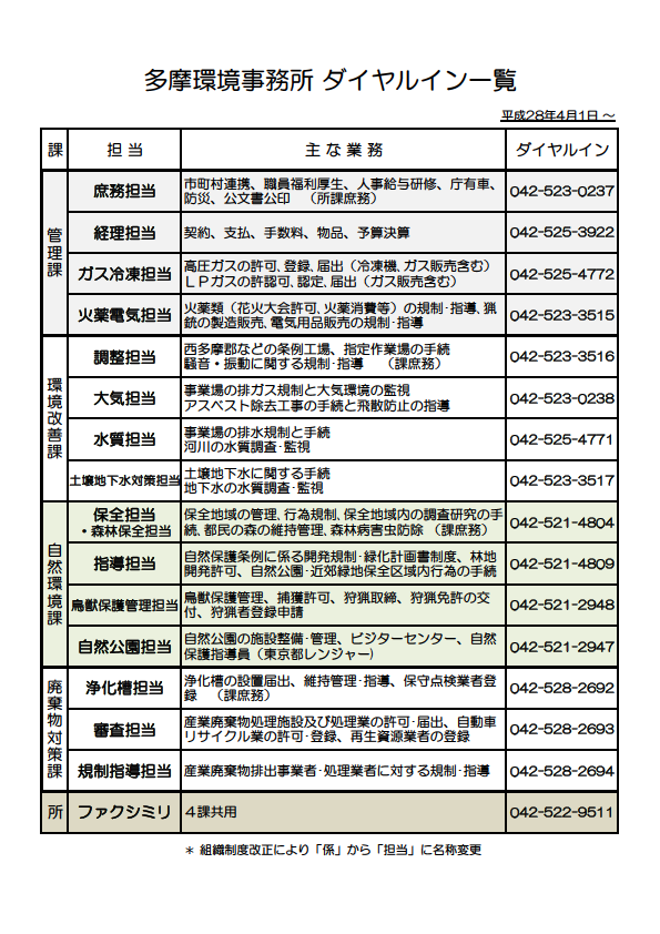 | 環境改善部 | 計画課 大気保全課 化学物質対策課 環境保安課 自動車環境課 | |