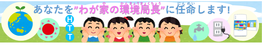 「わが家の環境局長事業」とは、小学生(主として小学4年生以上)を対象として、子どもが「環境局長」になって、家族で楽しみながら節電対策などのアクションに取り組む事業です。