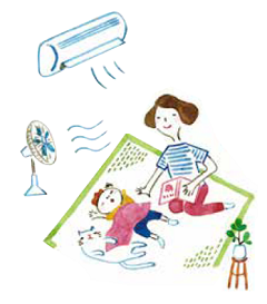 冷房時の室温は28℃、暖房時の室温は20℃が目安。換気にも気を付けながら室温調節して、無理のない範囲で省エネしましょう。