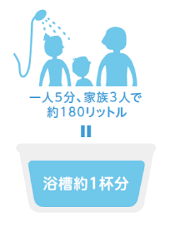 - 節水型のシャワーヘッドへの交換で、お湯の使用量が約2~3割減らせます。また、自分で簡単に交換できます。