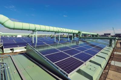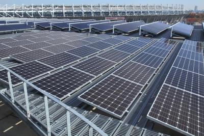 屋根に太陽光パネルを設置している施設
