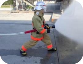 太陽光パネルが設置されている住宅等の火災においても、水による消火は可能であり、消火活動において直接水をかける場合は、活動隊員の安全確保の観点から、噴霧状の放水や放水距離を確保するほか、必要に応じて絶縁性の高い防護衣、手袋及び長靴等を着用しています。