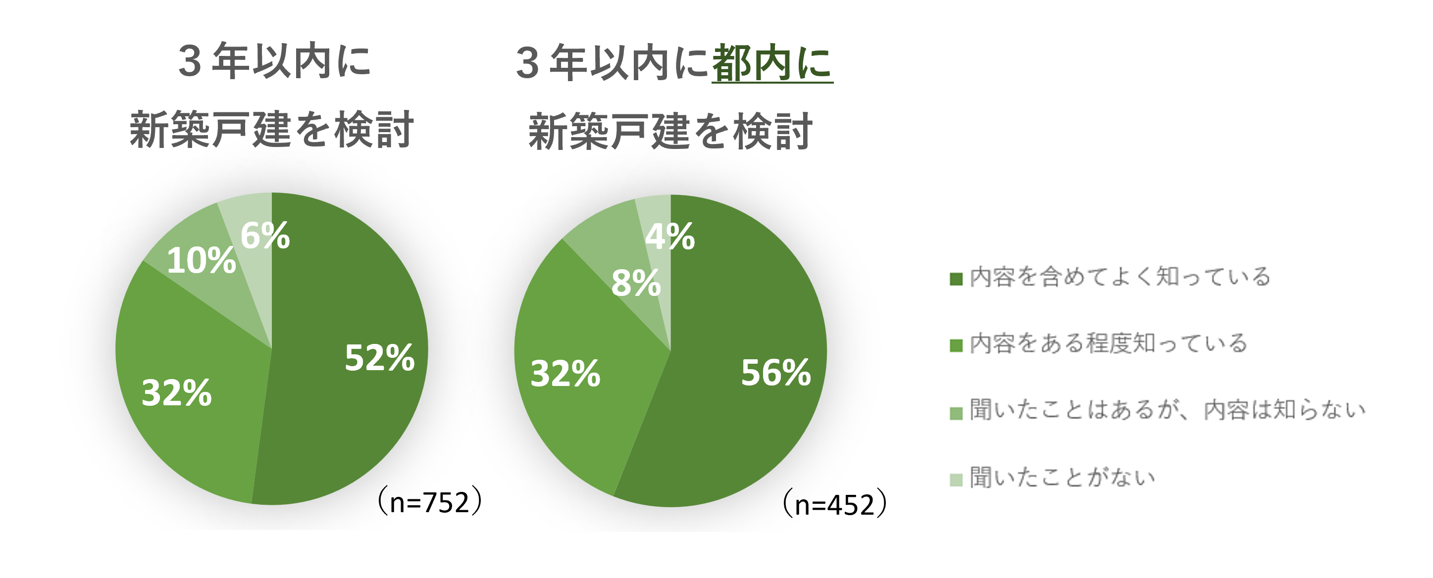 「あなたは、東京都が2025年から実施する、「大手ハウスメーカー等を対象とした新築住宅等への太陽光発電設備の設置や 断熱・省エネ性能の確保などを義務付ける」新たな制度についてどの程度ご存じですか。」(1つ選択)
