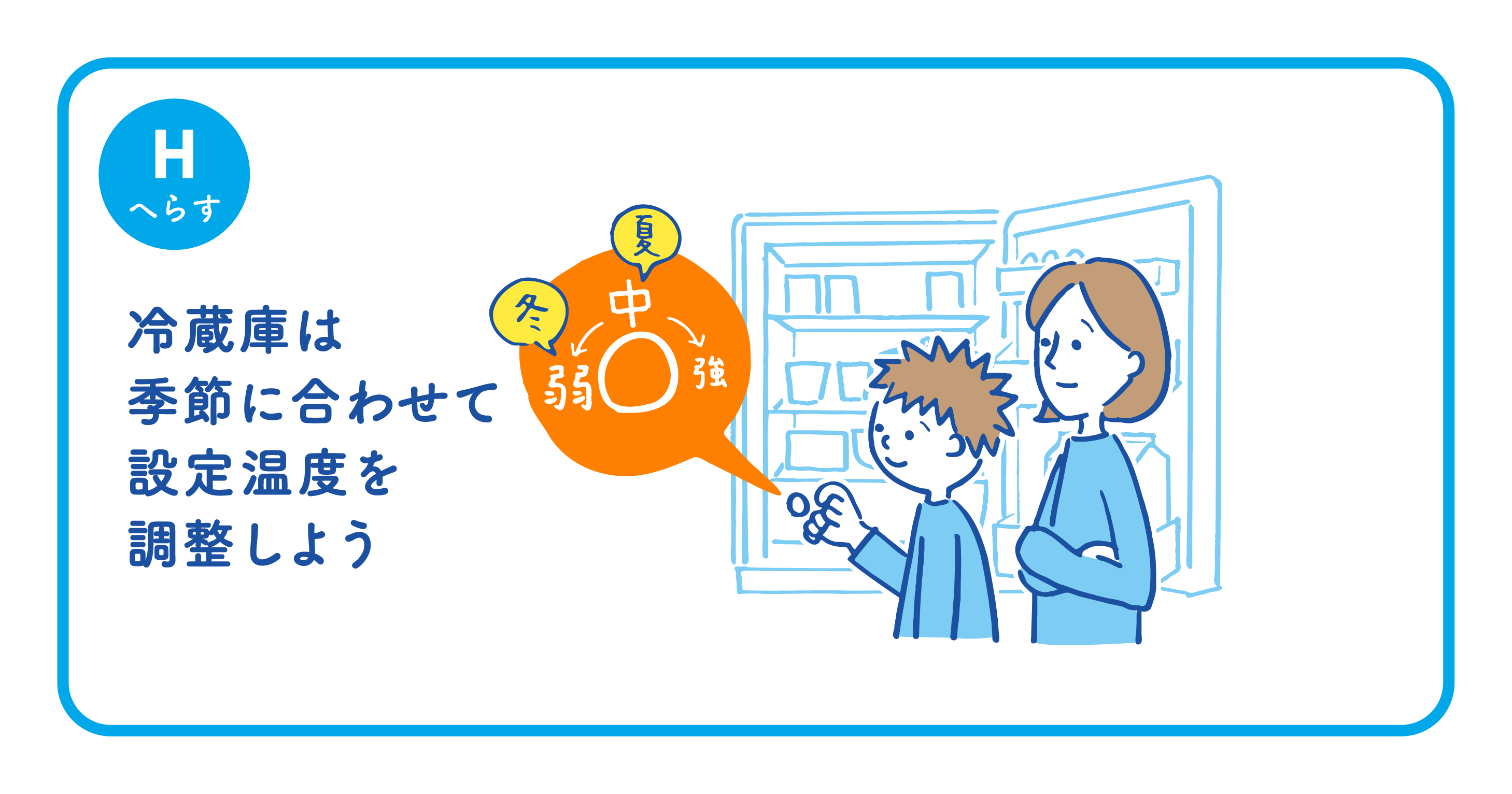 冷蔵庫の温度は、夏は「中」、冬は「弱」に設定しよう