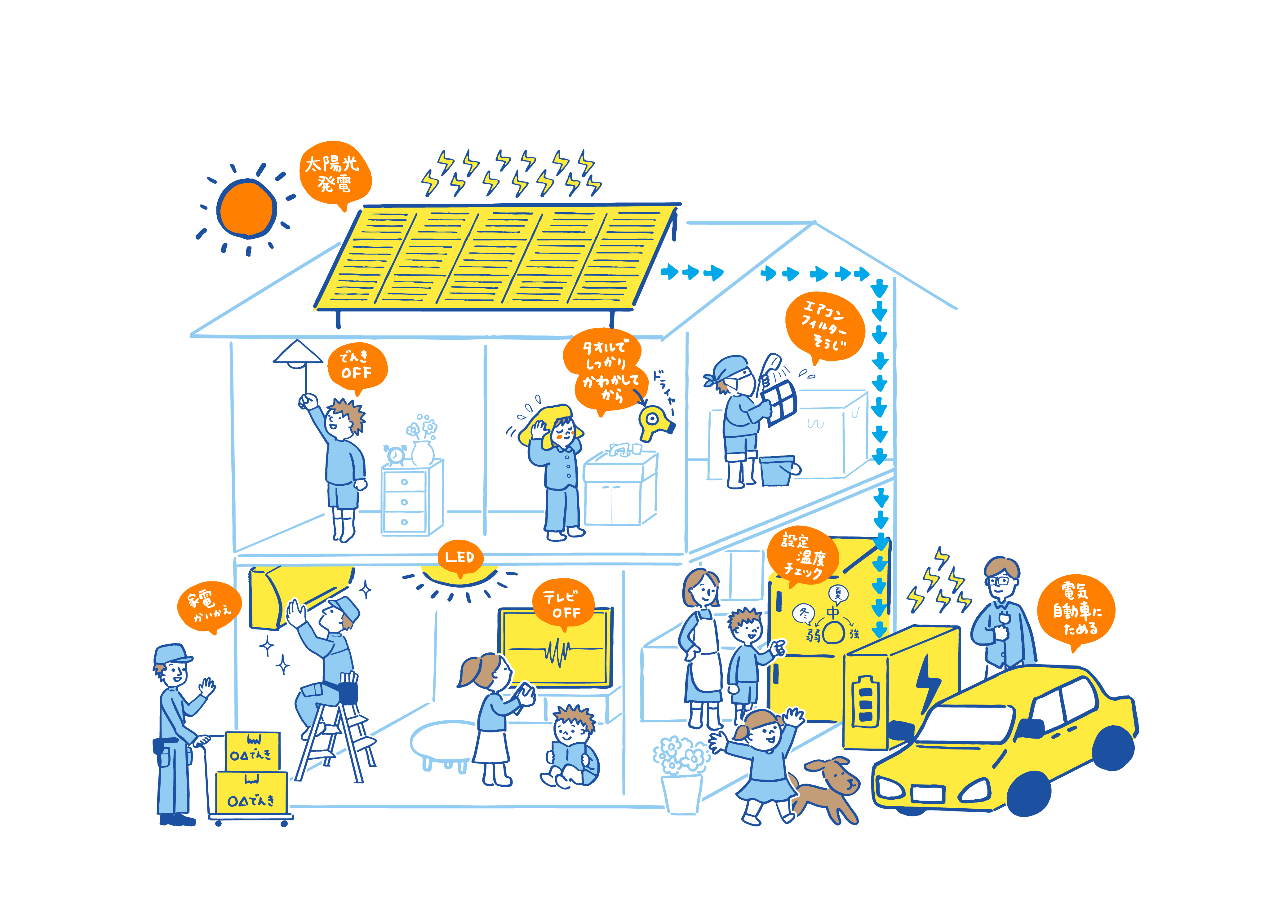 ~電力(でんりょく)をⒽへらす・Ⓣつくる・Ⓣためる~