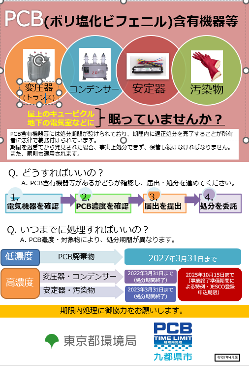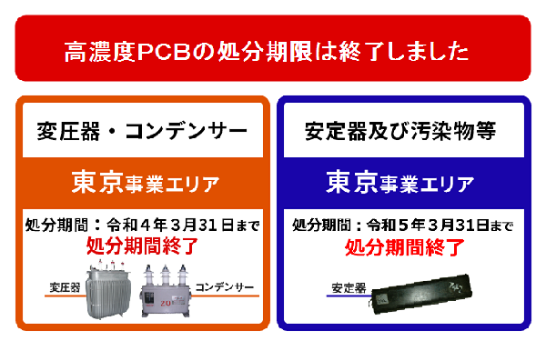 低濃度(微量を含む)PCB廃棄物の処分期間は「令和9年3月31日」までです。