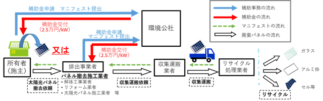 この度、排出事業者だけではなく、排出事業者に太陽光パネルの撤去を委託する所有者からも申請できるようになりました。