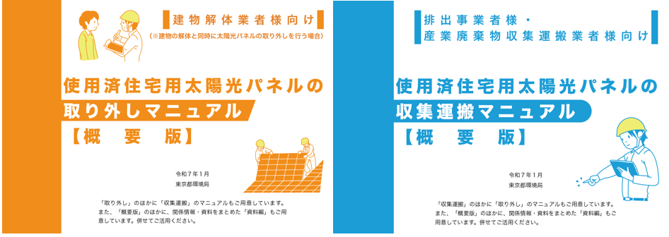 このたび、本協議会と連携し、住民の方向け「太陽光発電設備を長く・大切に使うために」及び事業者の方向け「使用済住宅用太陽光パネルの取り外し・収集運搬マニュアル」を作成しましたので、お知らせします。